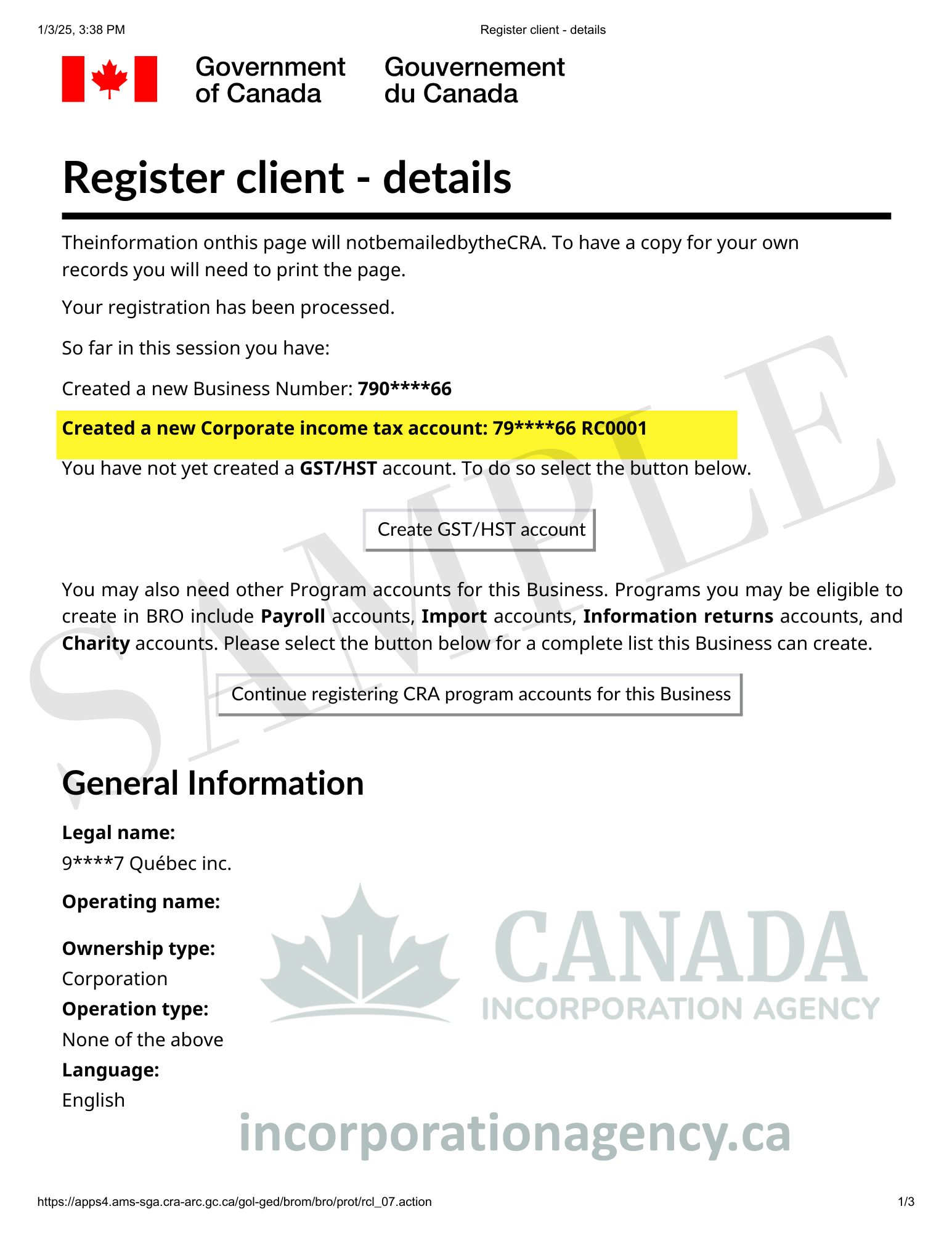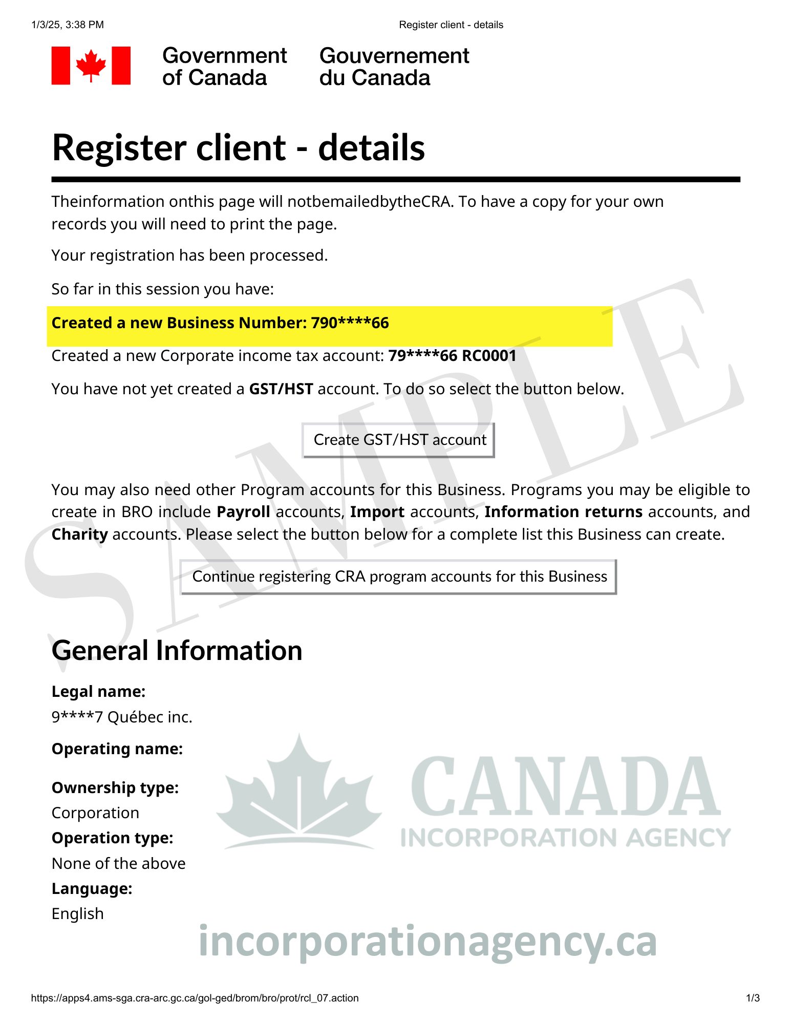 • Corporate Registry Annual Return: We handle the filing of your Annual Corporate Return on your anniversary date. This is distinct from your company’s annual CRA tax obligations.