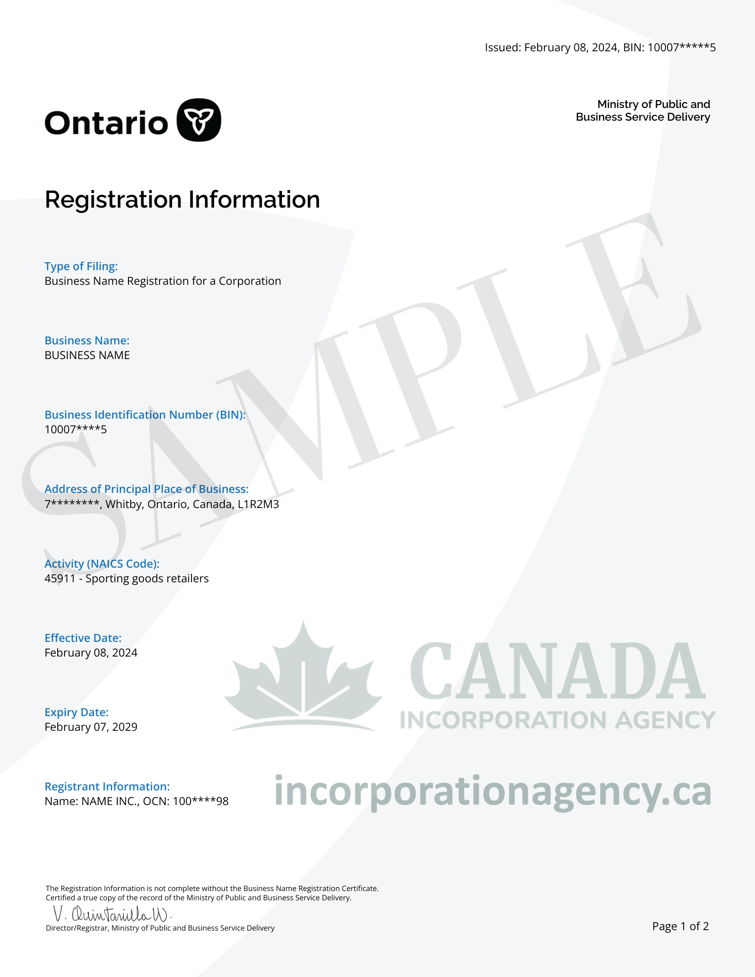 ✔ Assigned when you incorporate a business in Canada