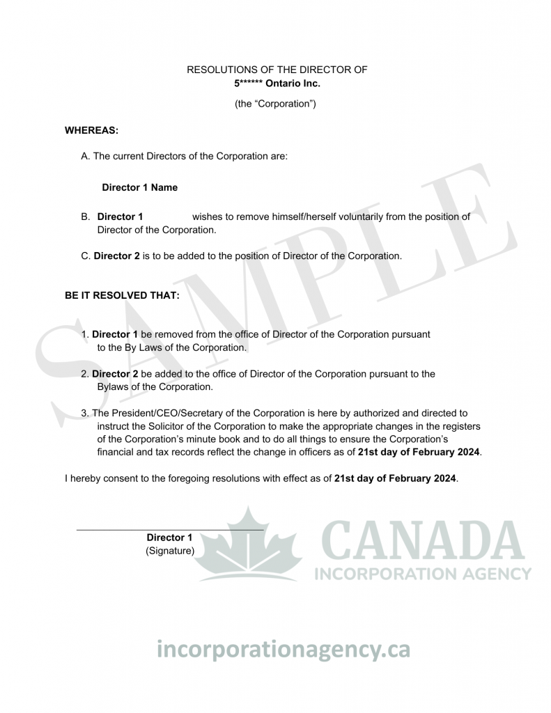 Typically, you’ll need a Notice of Change of Directors, board or shareholder resolutions, and updated registers—all included in our service.