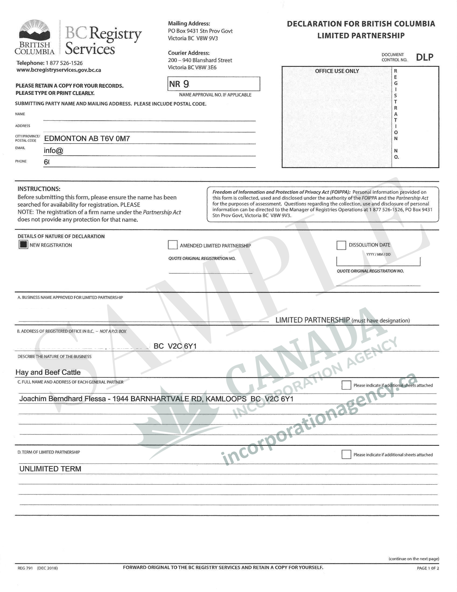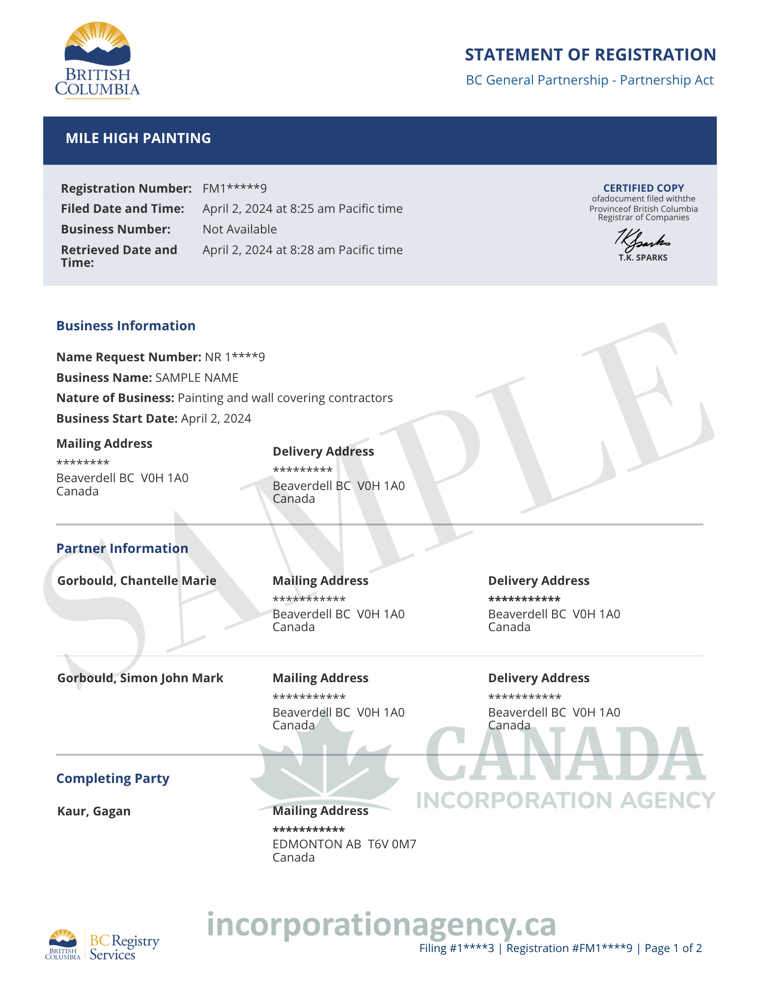 REGISTER A GENERAL PARTNERSHIP IN BC