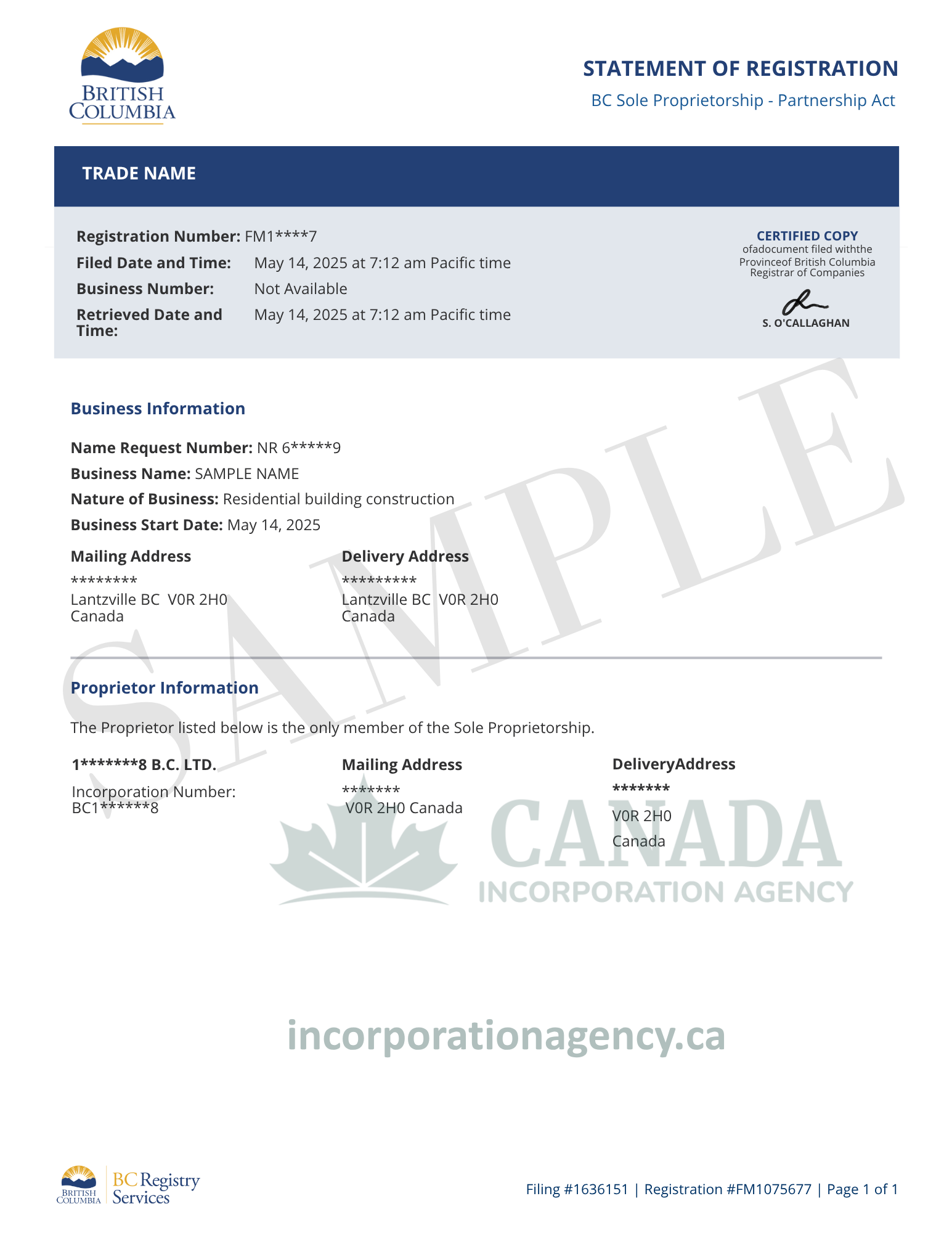 - We’re a trusted filing service with direct experience handling BC Registry Services