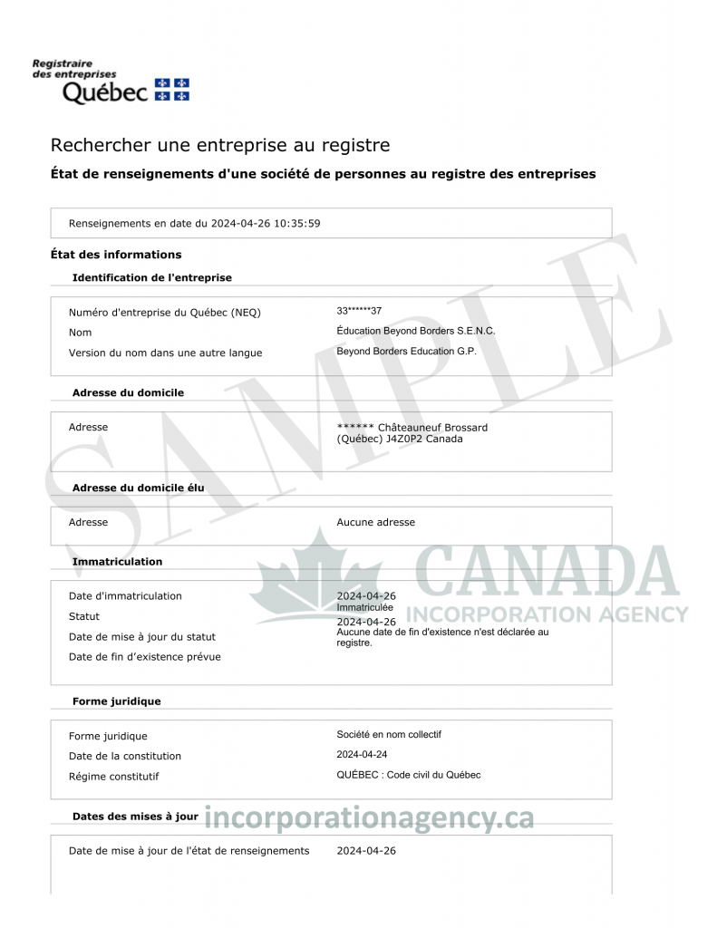 QUEBEC GENERAL PARTNERSHIP REGISTRATION