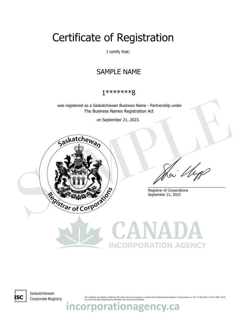 Register Your Partnership in Saskatchewan