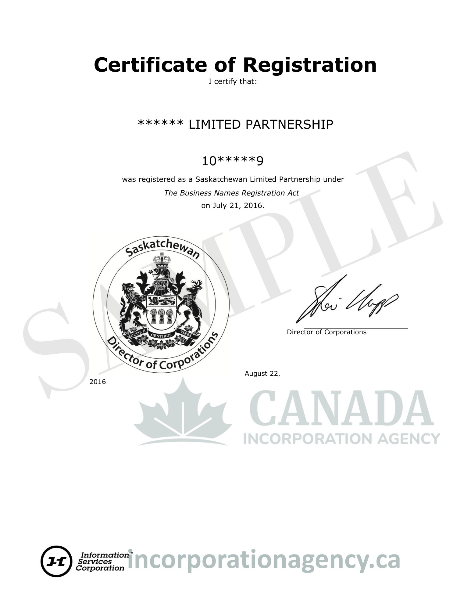 - Must be formally registered with the Saskatchewan government