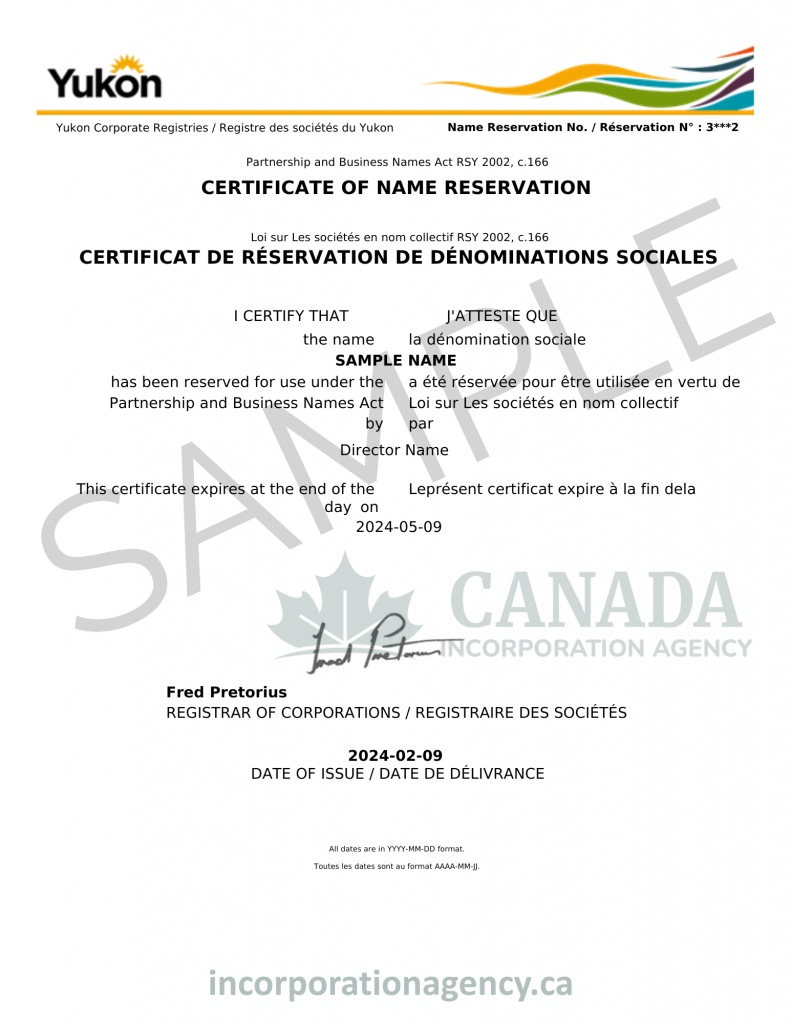Register Your Partnership in Yukon