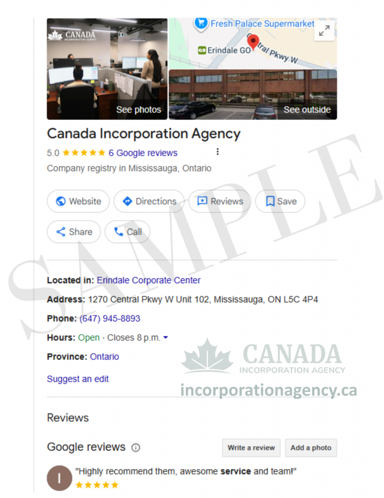 Posted on Francis FungTrustindex verifies that the original source of the review is Google. Larry is the best. Responsive, knowledgable, friendly. When I have to incorporate again in the future I'm going to ask for Larry again.Posted on David GillanTrustindex verifies that the original source of the review is Google. Brianna has been over the top great! She has worked with me guiding me on every little thing and suggesting things that will make incorporating easier and necessities that I missed. Thanks Brianna!Posted on Jordan CalderonTrustindex verifies that the original source of the review is Google. I had a fantastic experience incorporating my business with Canada Incorporation. The process was smooth, efficient, and incredibly straightforward. Their team was knowledgeable, responsive, and provided clear guidance every step of the way. I appreciated how quickly everything was handled, and I felt confident knowing my business was in good hands. I highly recommend Canada Incorporation to anyone looking for a reliable and professional service to start their business journey.Posted on JinalTrustindex verifies that the original source of the review is Google. Great Service! Very professional staff.They explained things really well and made the process smooth and easy to understand.Posted on Levey DTrustindex verifies that the original source of the review is Google. I had a great experience registering my business with CIA! Communication was seamless and everyone I talked to was very professional. I will definitely use their services again going forward!Posted on Ashleigh SchillingTrustindex verifies that the original source of the review is Google. I had a fantastic experience with this company! My registration was completed early! The agent I spoke with was very knowledgeable & friendly! I would definitely use them again in the future 😊Posted on Tina ParkerTrustindex verifies that the original source of the review is Google. Staff was helpful, friendly and knowledgeable helping me with my new business. Would definitely deal with Canada Incorporation Agency again!!Posted on Eve APTrustindex verifies that the original source of the review is Google. The customer service is awesome and the registration process is super quick!