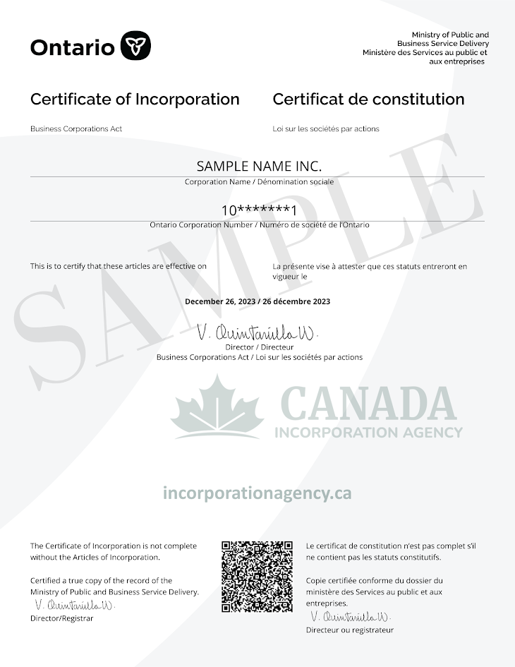 Incorporating a business in Ontario doesn’t have to be complicated. You’ll receive your official Certificate and Articles of Incorporation right in your inbox—often in just a few business hours.