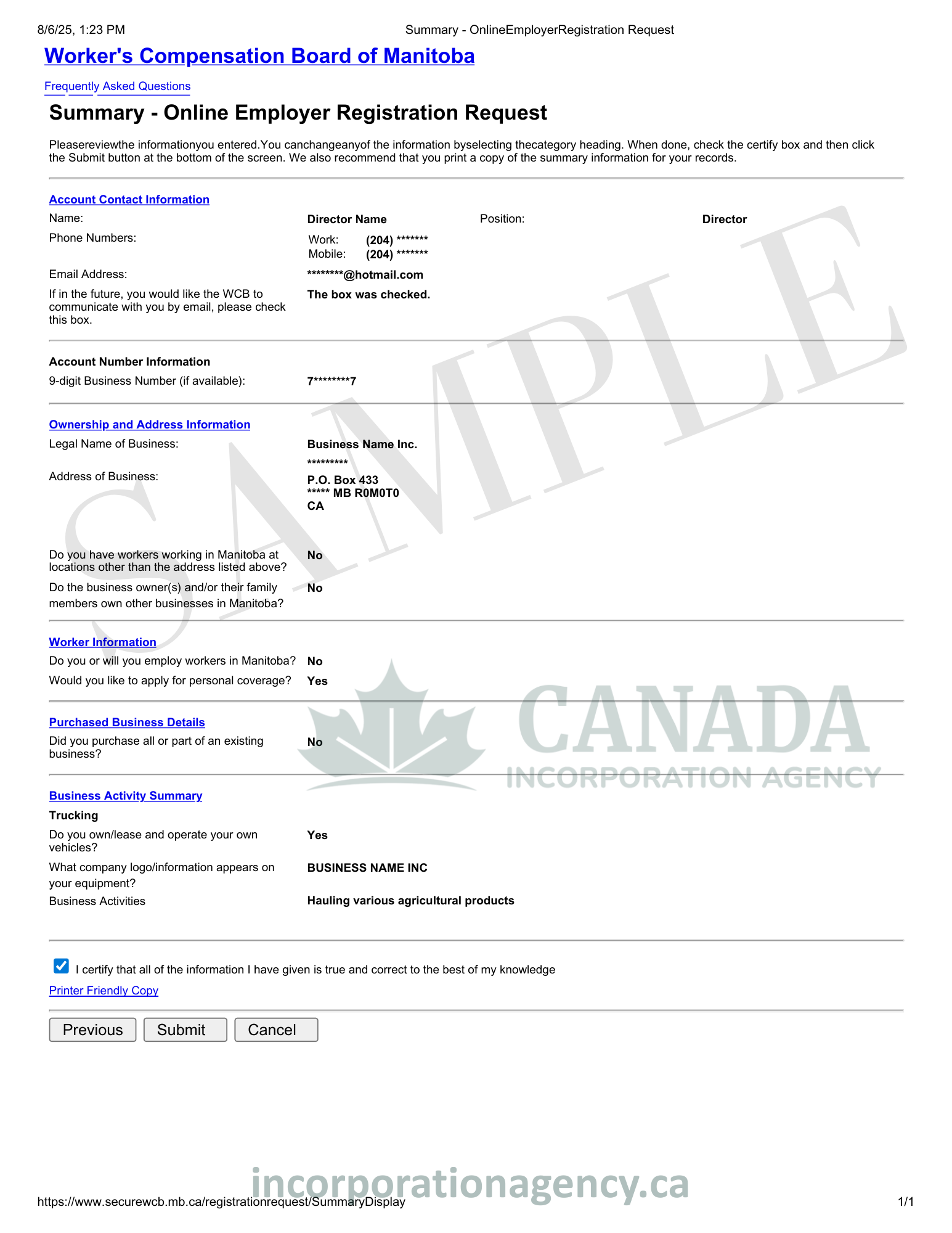 You’ll receive your WCB Registration Certificate right in your inbox—often in just a few business hours.
