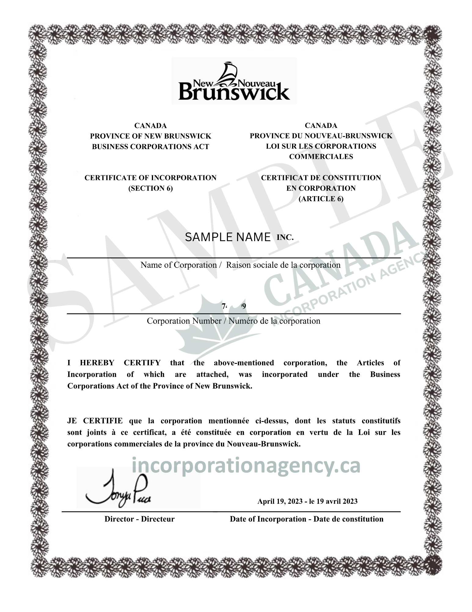 New Brunswick (NB) Incorporation Packages