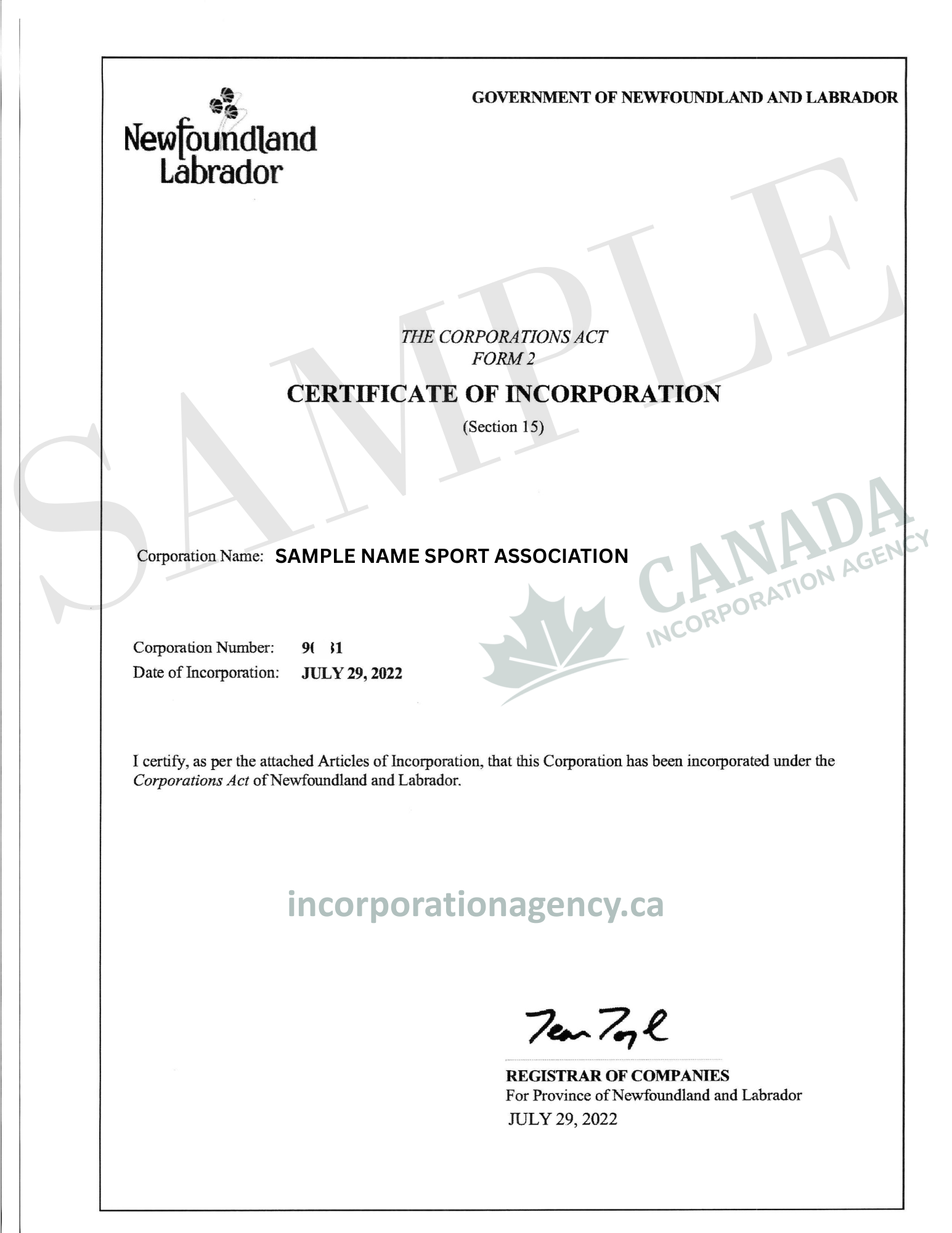 You may incorporate your Newfoundland non-profit under the NL Companies Act.