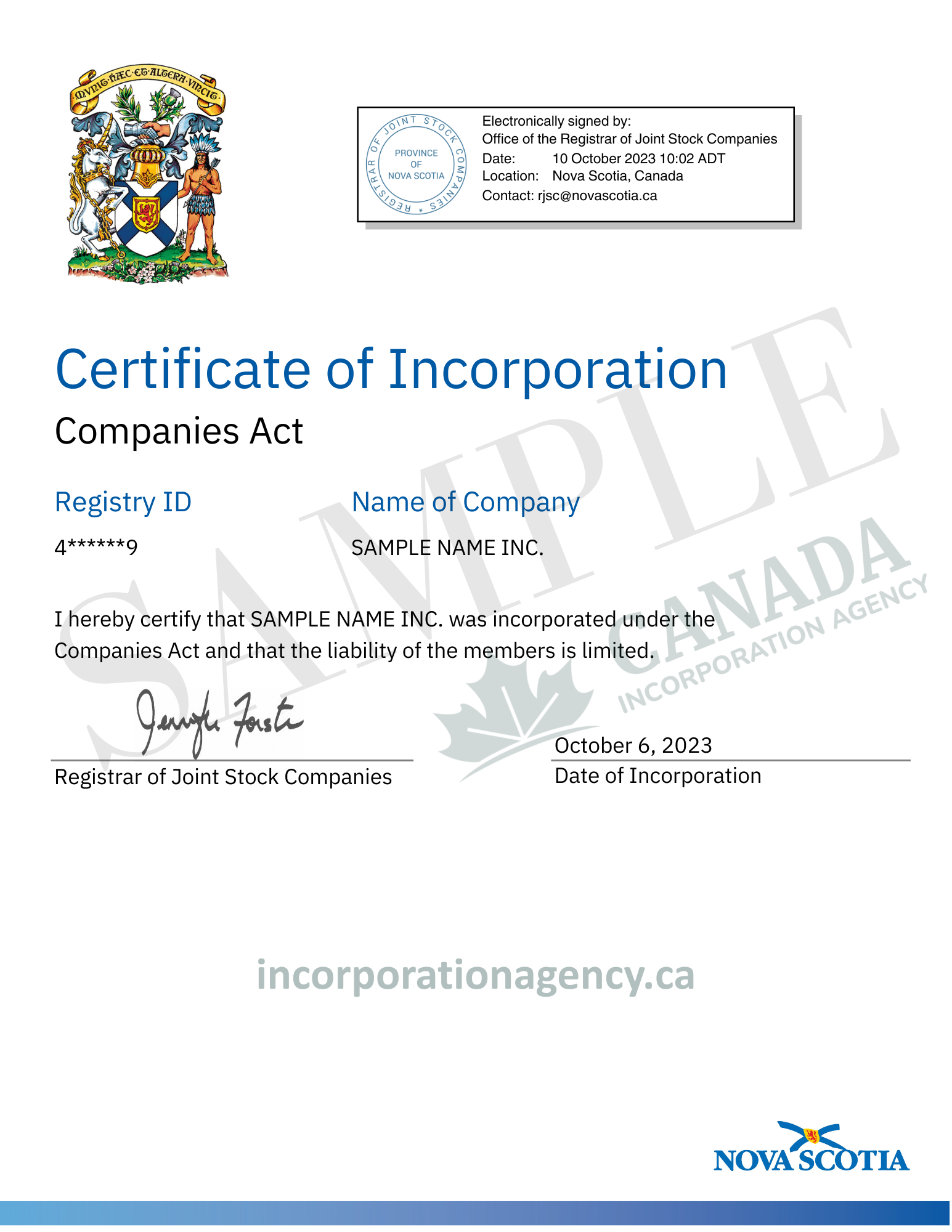Nova Scotia Professional Corporation Registration doesn’t have to be complicated. You’ll receive your official Certificate and Articles of Incorporation right in your inbox—often in just a few business hours.