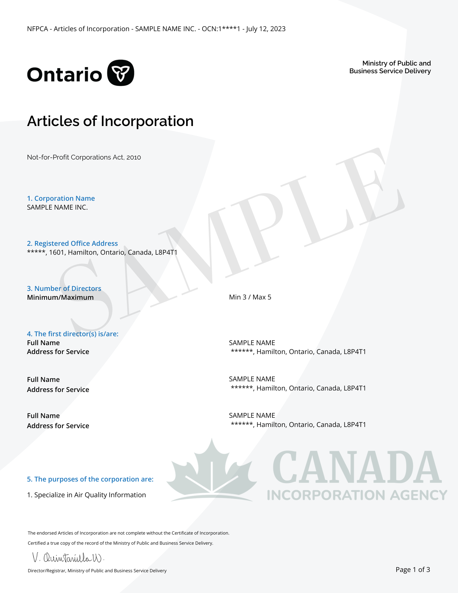Ontario Not-for-Profit Incorporation