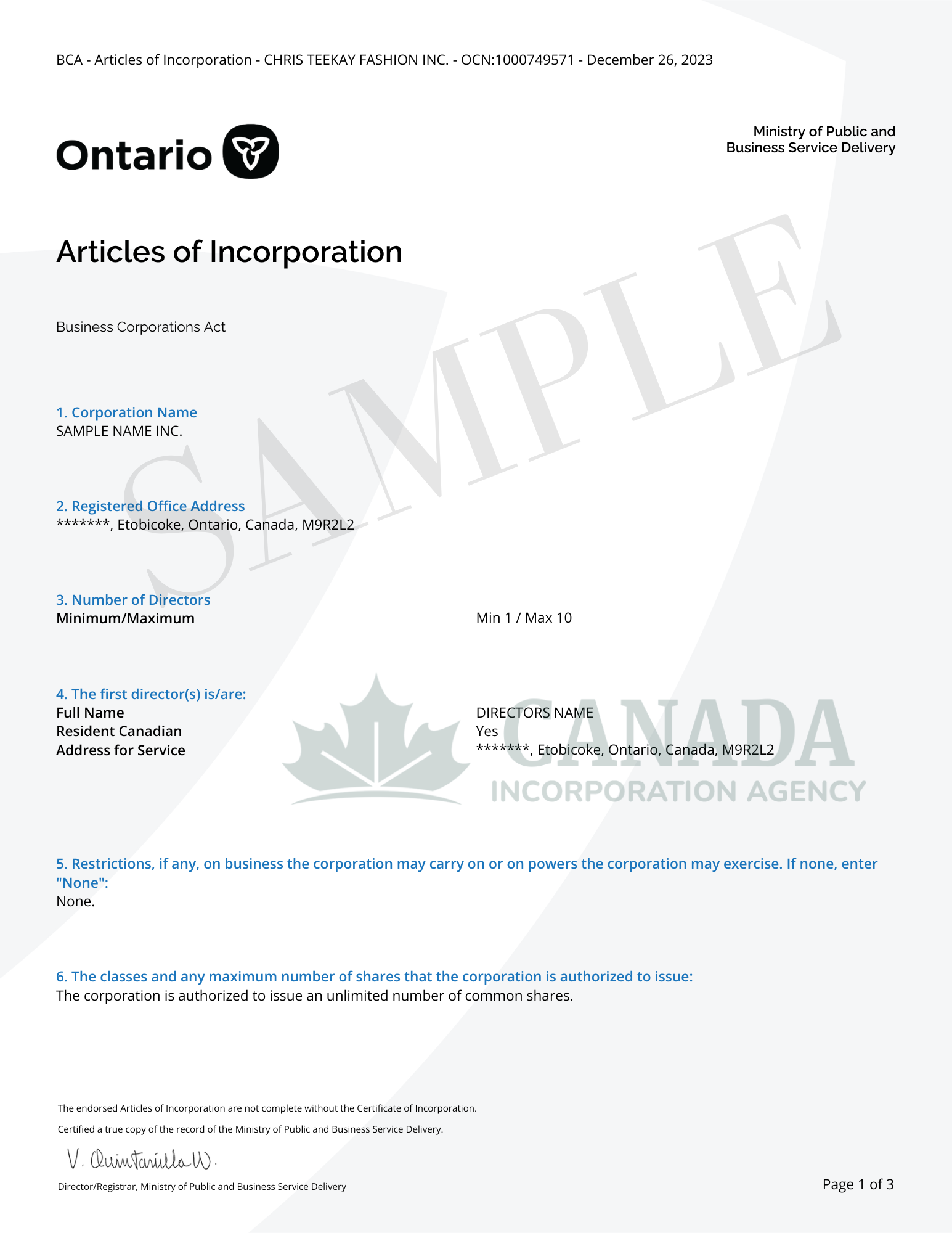 - Customizable Articles of Incorporation