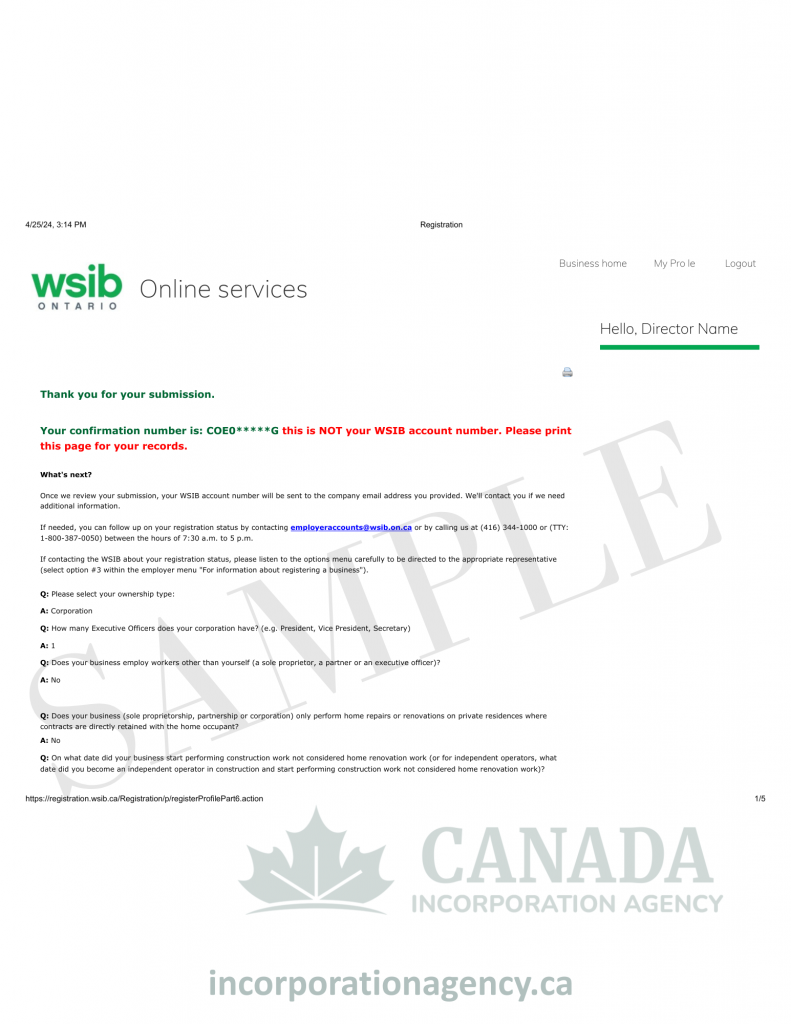 ONTARIO WSIB ACCOUNT REGISTRATION
