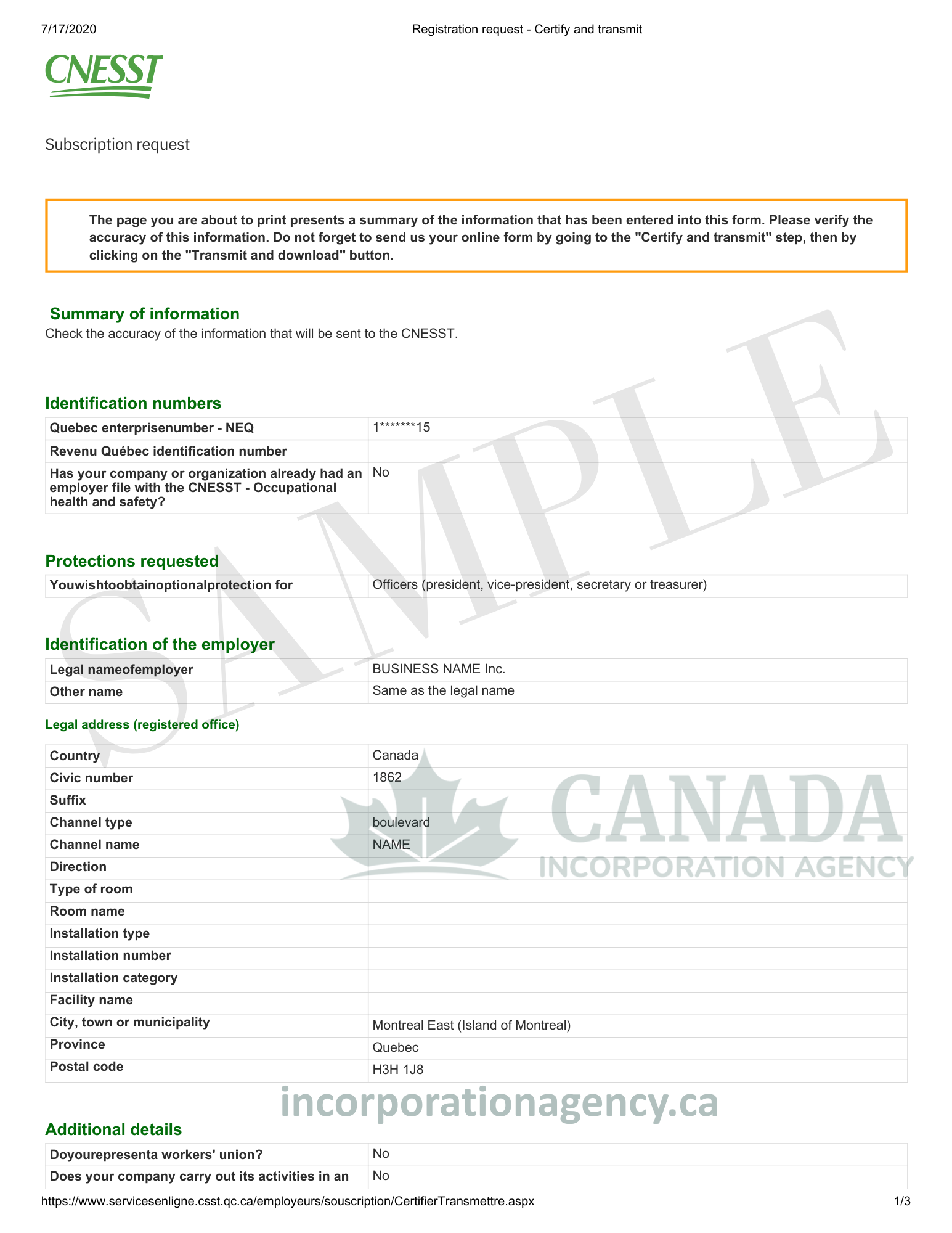 Registration with the Commission des normes, de l’équité, de la santé et de la sécurité du travail