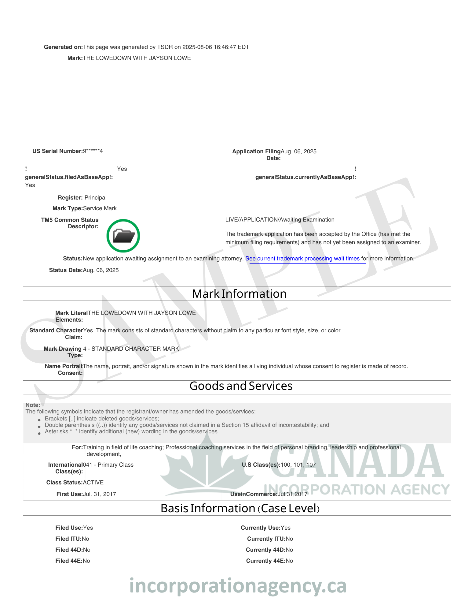 Canada Trademark Application