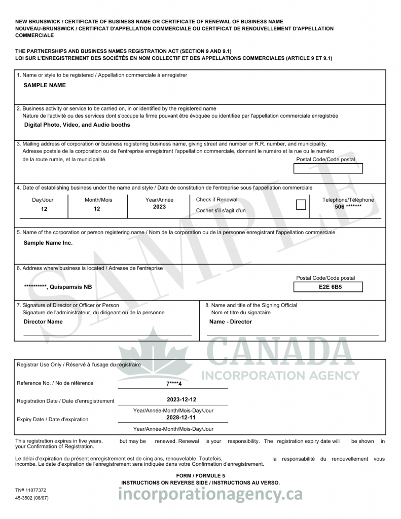 REGISTER A TRADE NAME IN NEW BRUNSWICK