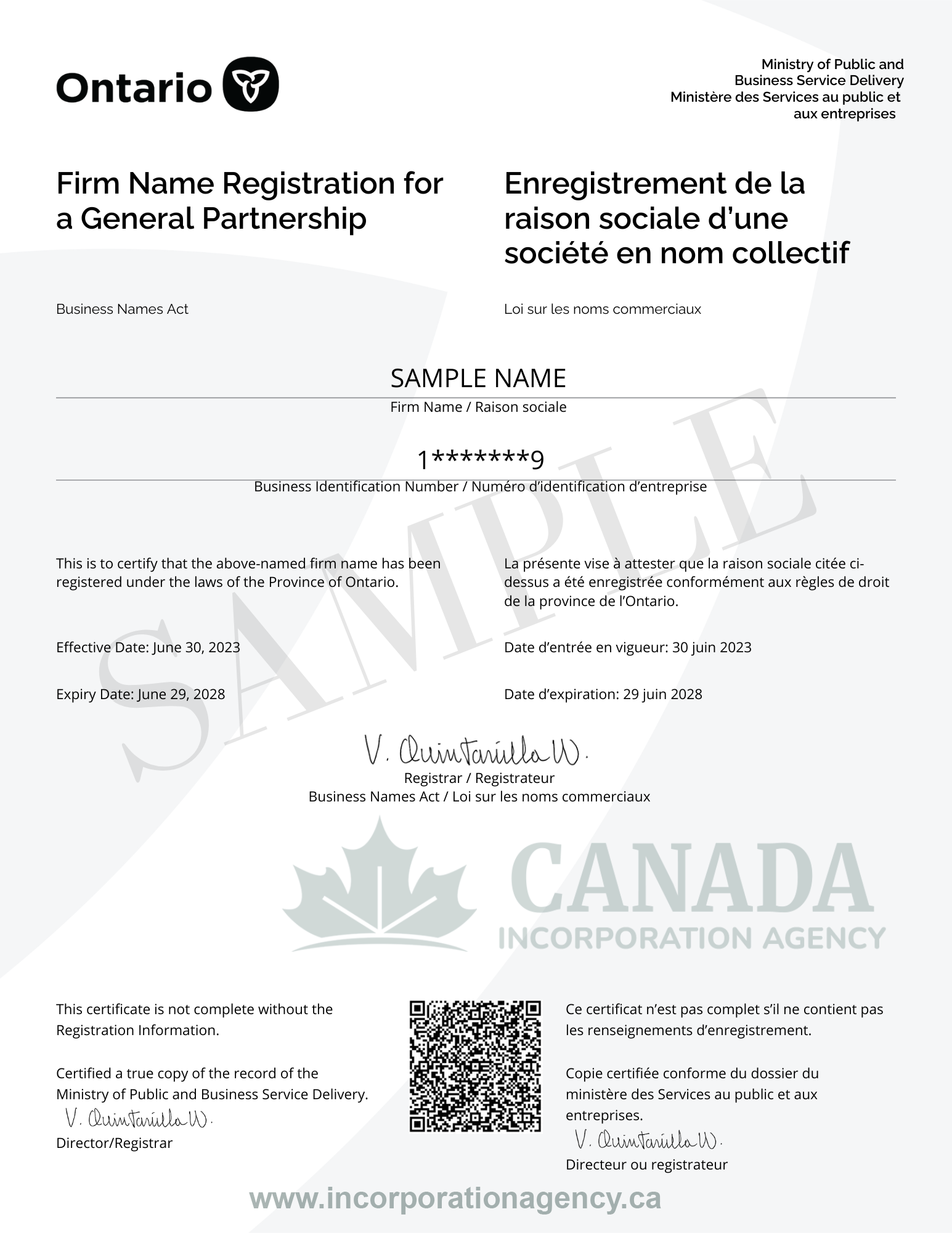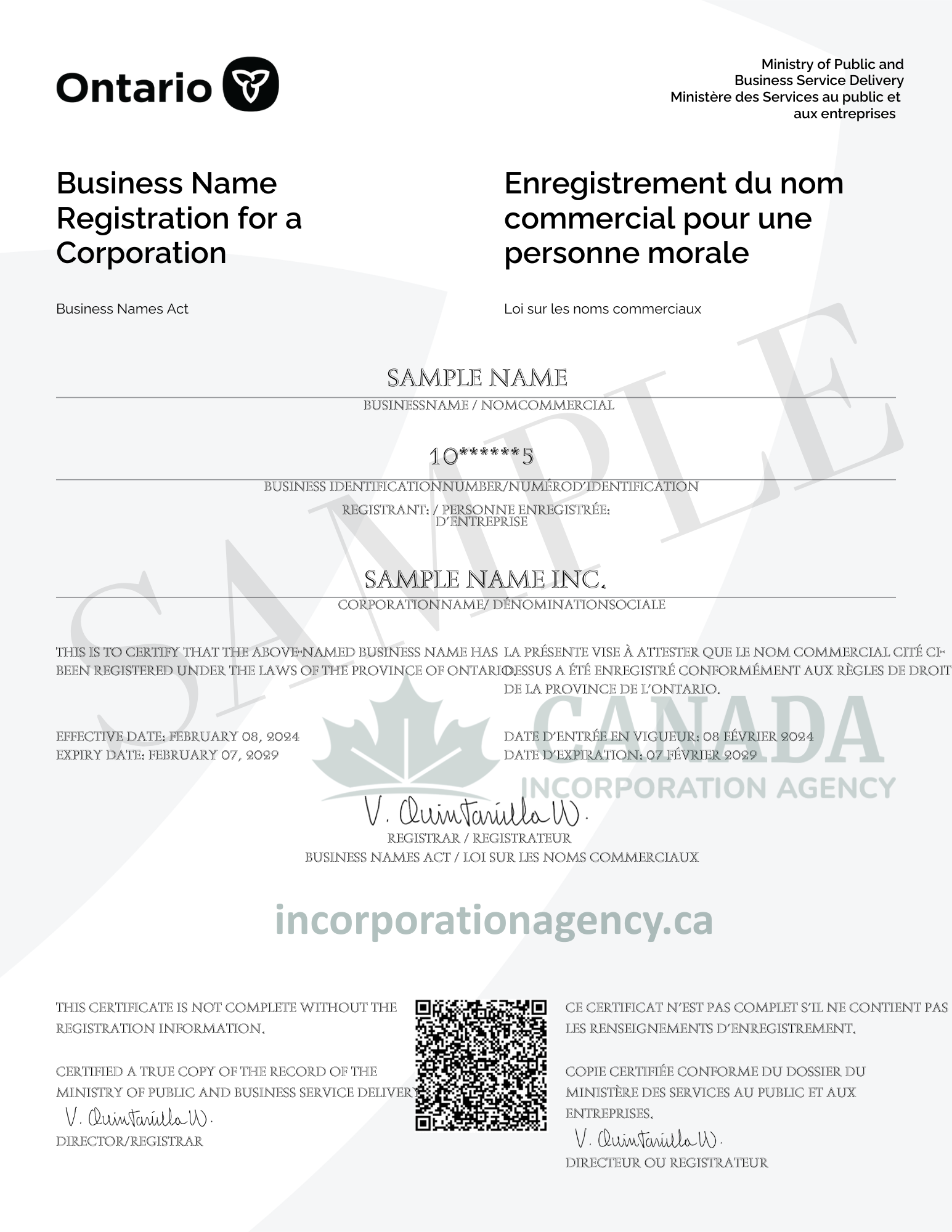Ontario Trade Name