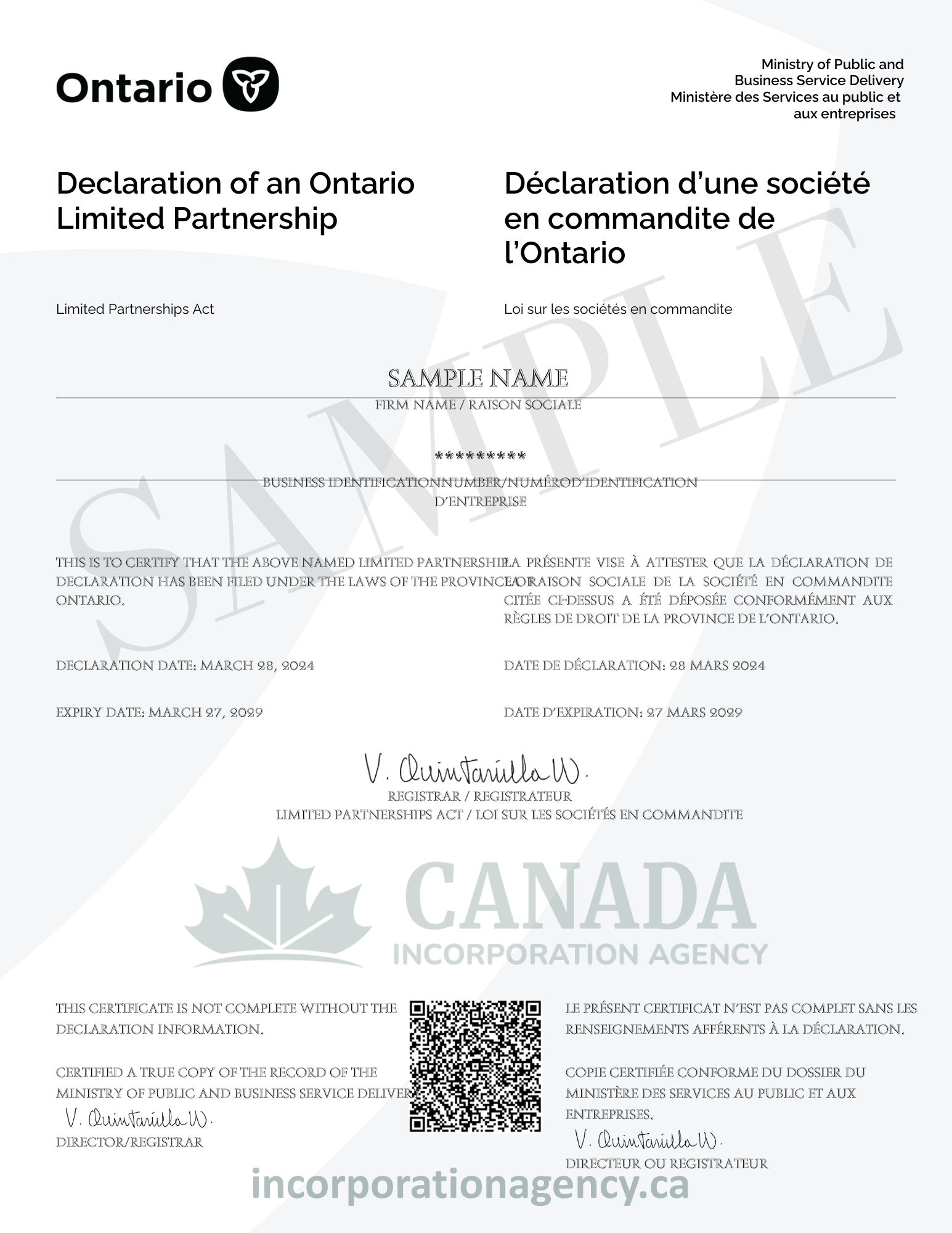 - Must be formally registered with the Ontario government
