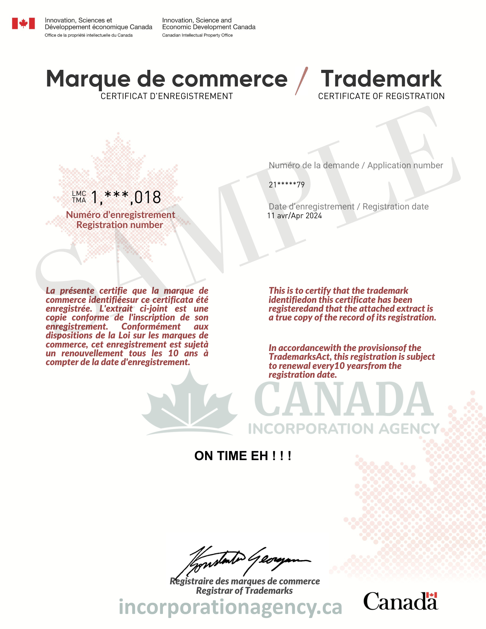 Once the amendment is approved, you will receive your updated trademark report by email or mail, confirming the changes with CIPO.